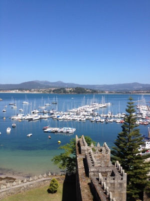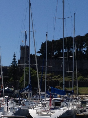We awoke to beautiful sunshine and had a lazy morning before sailing over to Baiona (about ten miles away). It was a lovely, gentle sail downwind (wind behind us pushing us along). We have a place in the Real Nautica Yacht Club which is set in the old fort overlooking the bay. Above the yacht club is the Parador hotel and restaurant where an early evening drink had to be taken. This is our last night in Atlantic Spain so we have decided to go out in style and eat out for a change – probably in the yacht club, if they will let us in as it’s quite posh and we haven’t exactly packed our party frocks!