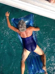 After refuelling at Santa Ponça marina on Thursday we motored around the corner to Sant Elmo in the lee of an offshore island called Dragonera. There are a lot of mooring buoys there to protect the sea grass but we opted to anchor in sand so that Sam and Mags could swim in turquoise waters. The sea was crystal clear and we had a wonderful afternoon chilling – apart from Liz who decided to clean Nimrod’s waterline floating on a lilo with a scrubbing brush!. Then a BBQ on the back of the boat with homemade burgers and grilled Halloumi. It was a very peaceful evening gently bobbing at anchor.