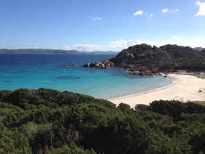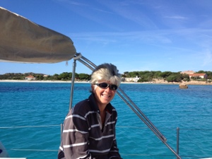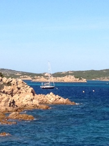 Today we went in search of sandy beaches and turquoise waters. We ventured north east of Palau to Cala Ferringo on Isola Spargi but it was very rocky in the entrance to the bay so caution got the better part of valour and we moved onto the island of Santa Maria where the water was an amazing turquoise but somehow it didn’t do it for us. Maybe we have been spoilt but there were too many tourist boats for our liking. We then moved a couple of miles south to Cala Nord in Deadman’s Reef Passage which is a narrow channel between islands. It has park authority mooring buoys here and spectacular beaches a dinghy row away. We are now on one of these buoys and have set a lobster pot up again (fingers crossed). This afternoon we went ashore and walked round to look over the Pink Beach (immortalised in various films) but is now a conservation area so access to the actual beach is prohibited and amazing to see a pristine beach of pink sand with no footprints! Pictures of Liz at Santa Maria, Nimrod, the beach at Deadman’s Reef Passage Pink Beach and La Maddelena town.