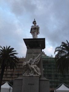 Pictures of Sassari – statue of King Victor Emmanuelle and said car park – our new sweatshirts from Val and Caroline and Caroline at the helm with Val.