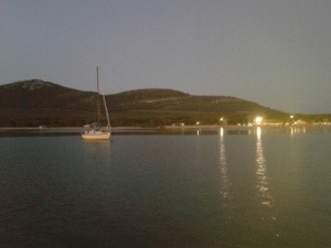 Started early (12.30) in anticipation of turquoise sea and sandy cove. Wind was lacking but sun was high so motored over to Porto Conte. Spent the evening swimming in lovely bay shared with some local mullet and star fish. Beautiful BBQ meat feast accompanied by local ravers till 6am.