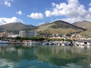 We left Ponza at 0300 as planned on Weds for the 7 hour trip back to the mainland. There was still no wind until about 0800 but then the predicted blow came. It was from the NW so we put the genoa up (that’s the flappy white thing at the front) and sailed with just that and still made over 6 knots. We were running low on fuel so wanted to fill up as soon as we arrived as we weren’t sure what time we would leave the next morning. However, the fuel was between two hydrofoil ferries. There were a number of fishing boats waiting to fill up as well so we spent nearly an hour waiting our turn. Eventually, we motored in carefully as we didn’t want to hit either the ferry or the hydrofoils sticking out of their sides. I don’t think that they get many visiting yachts as our credit cards didn’t work so had to pay for 150 litres with cash!