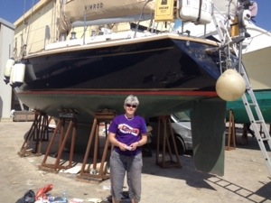 Pictures of Nimmie all shiny, her teak decks, Liz and a view from the boatyard. As someone once said, blue water cruising is about mending your boat in exotic locations!