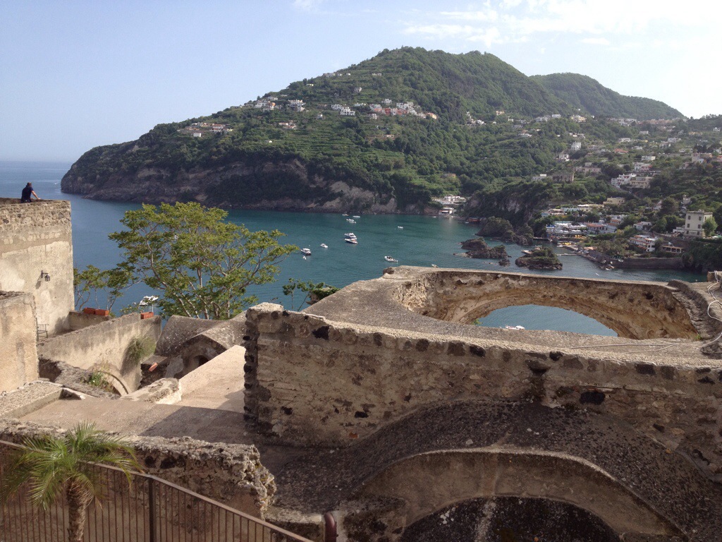 After lunch on board, we then walked into the main town of Ischia some 45 mins away. It was hot but enjoyable and remarkably clean compared to the mainland. There were plenty of shops to keep Liz happy! We also visited the Aragonese Castle that sits on top of an imposing promontory. It was amazing with lots of verandas, works of art, glorious views and lovely cafés. It was built in the 15th century and has since been a convent and a monastery. It is now privately owned and well worth the €10 entrance fee.