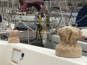 Back in Malta for Easter with Liz’s parents. They are staying in an hotel in Sliema (about 5 mins away) and we are, of course, staying on Nimmie. We arrived just after 7pm on Thursday evening, picked up the hire car and checked them into the hotel and then we all went out to an Italian restaurant, Mama Mia, nearby. The temperature was about 12 degrees C at 10pm but with quite a stiff breeze. Nimmie was looking good in the marina although with an orange tinge following heavy rain from the Sahara. Just as well we now have winch covers!