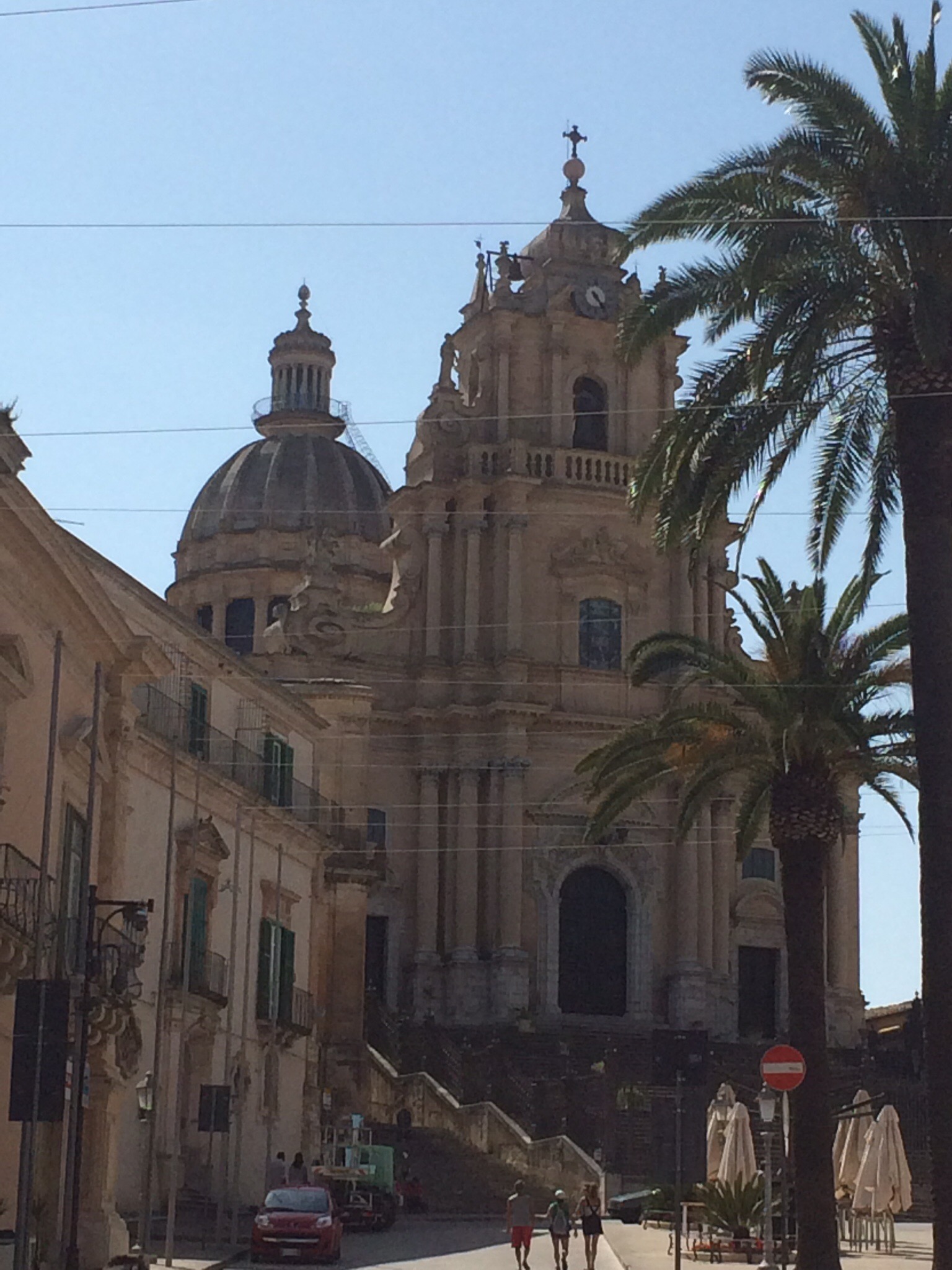 Yesterday, we went into Ragusa to the smaller, and older, part called Ragusa Ibla. This was the town before the 1693 earthquake and is full of baroque buildings as well as the requisite duomo. We had intended to eat at the Michelin starred restaurant there but we didn’t get there in time as they stopped serving at 1330. Another time. Instead we had lunch at a little restaurant just behind the duomo, washed down with a fab bottle of local wine. Pictures of Ragusa Ibla Duomo and gardens.