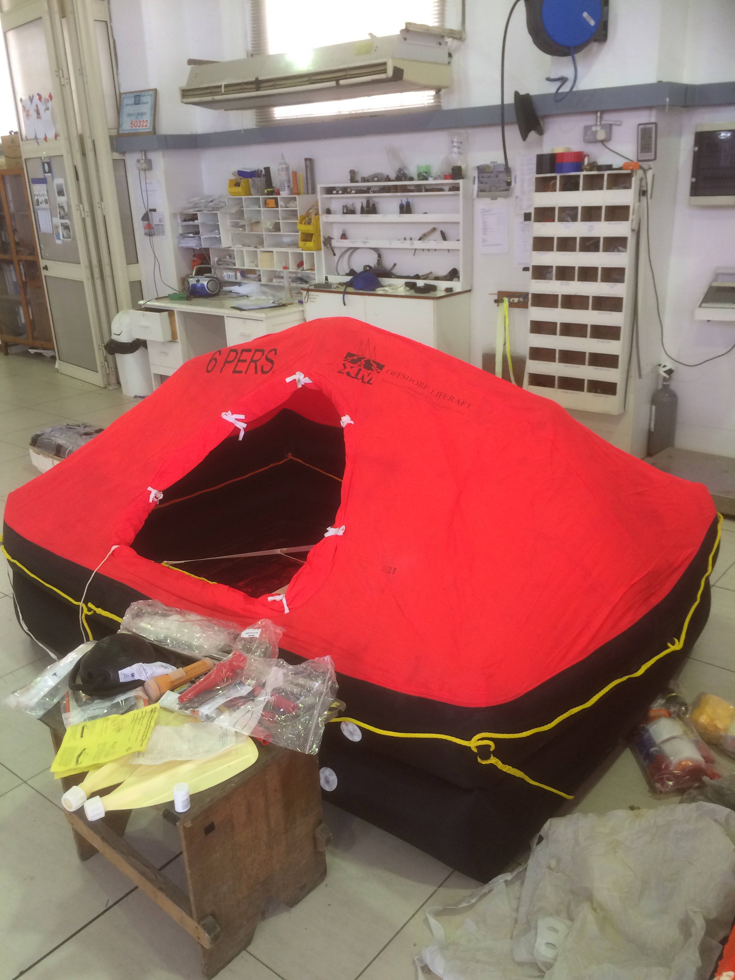 Peter seems to have done a splendid job of sandblasting the keel (see previous blog) and putting more coppercoat on it. We are also having a metal bow protector added so that the very sharp end of the anchor doesn’t chip the gel coat as we raise the anchor. We have had a new main sail and stack pack (holder of said sail) made along with matching sprayhood. This time we have had a zipped window put in on the sprayhood so that we can unzip it and have air coming through but with the protection of the rest of the spray hood. We haven’t seen these yet so watch this space! For those of you who have been following, or even visited us, you will know about our frustration of a non working fridge. This should soon be rectified as we are having a new compressor fitted. Let’s hope that is all that is needed rather than a completely new fridge unit – a difference of hundreds rather than thousands of euros! Whilst out of the water, Peter noticed that the one of the bow thruster blades seemed to be rotating freely so that it wouldn’t be as effective going to starboard. Not a good thing when trying to get out of a tight spot. We have also had the life raft serviced so it should be good for a few more years – let’s hope we never have to use it!
