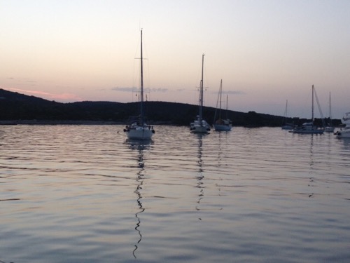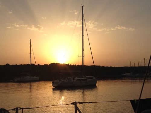 So continuing our journey south on Tuesday we left Mali Losinj after breakfast out at a cafe and headed towards the islands of Molat and Ist, hoping to pick up a mooring buoy. It was a long way and with the wind almost head on we motor sailed with the main up and didn’t arrive until 7pm. Not surprisingly no mooring buoys left. So we anchored at Siroka on Otok Ist. It was a stunningly beautiful evening and a very pretty anchorage and we ate on board, watching the copper moon rise.