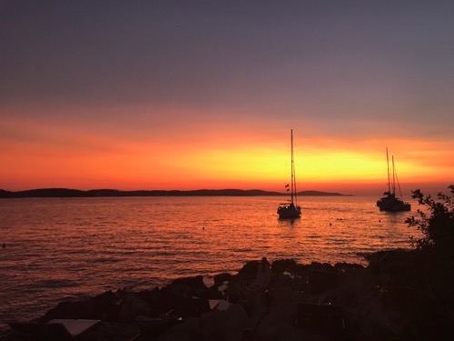 After a lovely, quiet evening it was time for another party bay. This time, THE party destination in Croatia – Carpe Diem Beach Bar on the Pakleni Islands. It’s in a secluded anchorage to the south as all the ferries arrive at the north end of the island. We anchored and settled down wondering why the bar was so quiet. Other boats joined us with many dragging their anchors in the high winds. By 9pm, everyone seemed to have sorted themselves out. By midnight, the music started. They have a very good sound system as you could hear every note and word across the bay! It finished at 0530, which is when Liz came to bed, having had her own private beach party on the back of the boat. Her best ever anchor watch!!