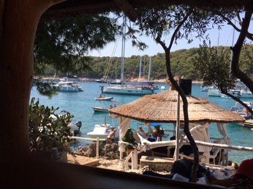 We then went a couple of miles along to the island of Klement where there is a large bay called Vinogradisce with mooring buoys, beach bars and restaurants. We had a reserved a place the afternoon before when there was no room for us (and paid 100 kuna for the privilege!) so we knew we had a mooring buoy waiting for us. It is a delightful bay with lots going on and room for 40 boats, some large and none small. With its crystal clear water (a regular feature in Croatia), delightful vista and shelter, we decided to stay two nights. Although lovely, by 11pm all was quiet.