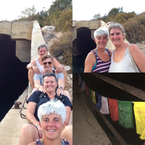 The next morning, we decided to move to the town quay as there was a storm due overnight and rain forecast for the next two days, which would not have been much fun for our guests if they’re stuck on a mooring buoy. And, my, did it rain but at least Nimmie had a good wash. There was a temporary respite in the weather on Saturday afternoon so we hiked across to an old submarine bunker, dating back to Tito’s era and part of the set for the James Bond film “The world is not enough” followed by the now mandatory sundowner at Fort George.