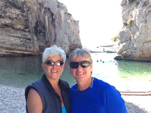 Liz had read that there was a gorge nearby at Stiniva where you can moor up so on Tuesday we went to have a look. It was pretty busy with charter and day tripper boats so we moored up in an adjacent bay (Vela Travna) and walked round. The walk down from the top was more akin to mountaineering than a gentle hike as stated in the guidebooks! Still, the view was spectacular.
