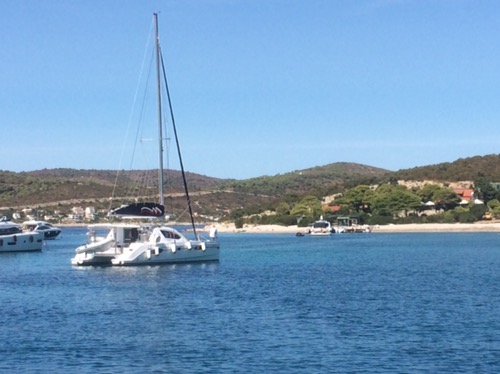 A lovely morning followed by a great afternoon in our next cove, Stončica, which actually has a sandy beach as well as the mandatory turquoise water. We were lucky to be able to pick up a mooring buoy right by the swimming area so spent the afternoon swimming and chilling although it does seem to get quite chilly (20 odd degrees!) once the sun goes down. We were then treated to a meal in the beach restaurant by Kate and Loui as it was their last night with us.