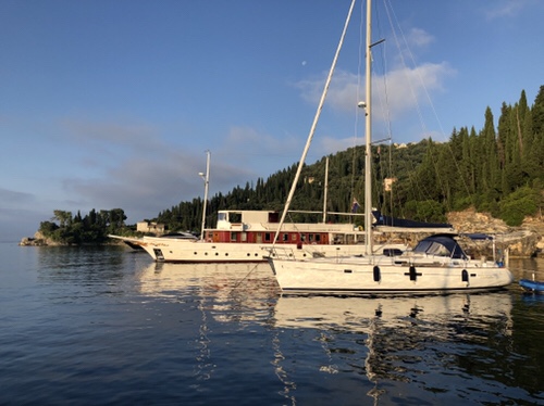 We want to explore Corfu Town tomorrow so we decided to move round to O. Garitsas bay this evening which is just to the south of Corfu Town. In fact, we are currently anchored under the Venetian Fortress with a positive dirth of superyachts for company!