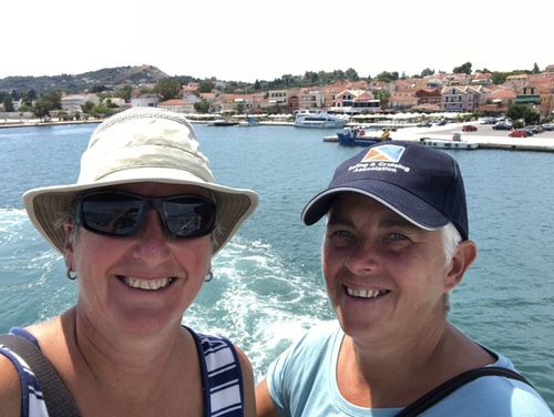 So, on Friday, we continued down the western side of Cephalonia with its sweeping coastline and majestic cliffs. We saw a number of pretty bays and beaches but nothing to tempt us to stay. We also knew that the wind was going to pick up in the afternoon and were keen to get to Lixouri on the south coast. It’s set on the western side of the bay of Argostoli with the capital city of the island on the eastern side. For some reason, Lixouri is the forgotten port of the bay. It’s actually quite pretty with a town quay lined with restaurants and bars, pedestrianised streets and good shops. It was flattened in the 1953 earthquake (as was Argostoli) and the subsequent rebuilding stipulated that the buildings should only be two stories high. However, even more importantly, our friends Lisa and Rob Orme were there and in their Southerly 38, Hightime. We’d both been in the Ionian this summer but this was the first time our plans coincided. The icing on the cake was that the town quay was free and even had electricity and water! The water wasn’t great so we made sure we filled our tanks with water from the water maker before coming in.