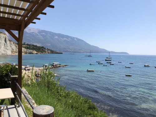 After dinner on board and a peaceful night’s sleep we took the dinghy to explore the bay and found yet another bar (Waterway) for morning coffee! We then continued our journey around southern Cephalonia.