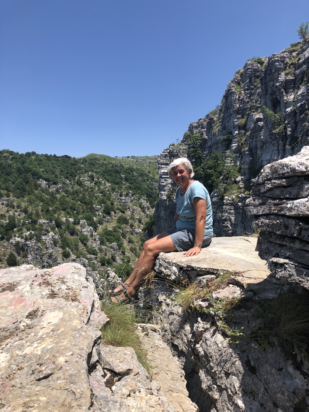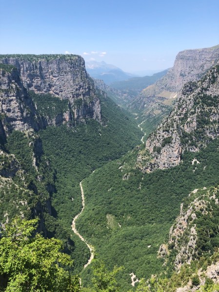 The next day (Friday) we moved onto the Zagori National Park where the Vikos Gorge is situated. It is claimed that it is one of the deepest gorges in the world but, in truth, whilst stunning it is only a kilometre or so deep. It appears to be one of Greece’s best kept secrets as there were very few people around. The villages and bridges are all made of the local stone and it has more of an Italian feel to it than Greece. The 30 minute walk in 30+ degree heat to the first viewpoint was more than worth it.