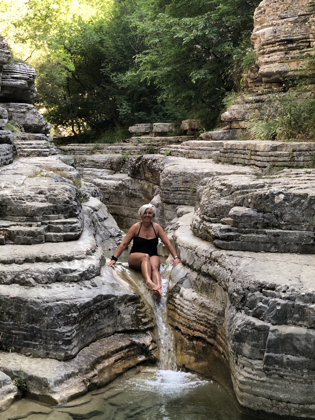 The following morning Liz was keen to try the natural rock pools nearby. We pretty much had them to ourselves for half an hour and even Liz went into the cold, mountain water!