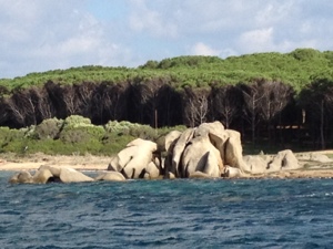 Today we went in search of sandy beaches and turquoise waters. We ventured north east of Palau to Cala Ferringo on Isola Spargi but it was very rocky in the entrance to the bay so caution got the better part of valour and we moved onto the island of Santa Maria where the water was an amazing turquoise but somehow it didn’t do it for us. Maybe we have been spoilt but there were too many tourist boats for our liking. We then moved a couple of miles south to Cala Nord in Deadman’s Reef Passage which is a narrow channel between islands. It has park authority mooring buoys here and spectacular beaches a dinghy row away. We are now on one of these buoys and have set a lobster pot up again (fingers crossed). This afternoon we went ashore and walked round to look over the Pink Beach (immortalised in various films) but is now a conservation area so access to the actual beach is prohibited and amazing to see a pristine beach of pink sand with no footprints! Pictures of Liz at Santa Maria, Nimrod, the beach at Deadman’s Reef Passage Pink Beach and La Maddelena town.