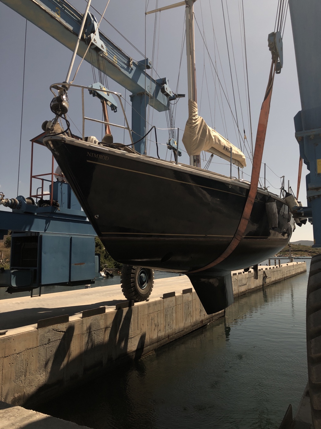 Tuesday morning was a bit blowy but we successfully motored out of our berth into the dry dock area to be lifted.