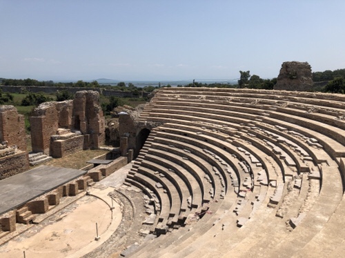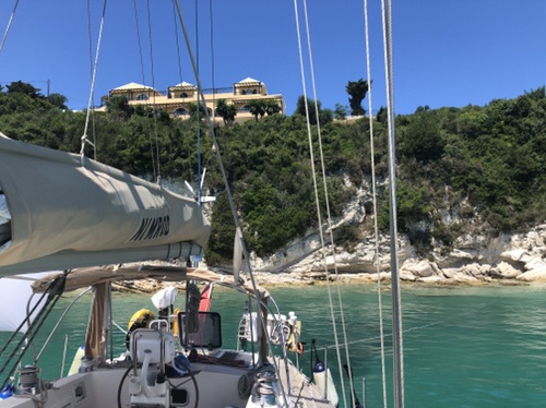 We went round to Vathy bay where we anchored just outside of town that gave us a bit more protection than the main anchorage. There was only one other boat in there when we arrived but by the time dusk came, there were about 5 more including one or two super yachts. We also had one French 54 footer decide to anchor very close to us. Given the blow due, we had put out quite a bit of chain and were worried that with his length, he would be too close when the wind swung. He didn’t seem to be bothered so we put out fenders and set the alarm for when the wind was due to change. In the end it was fine but didn’t make for a great night’s sleep.