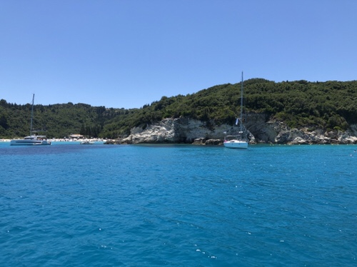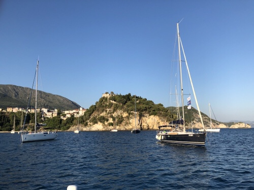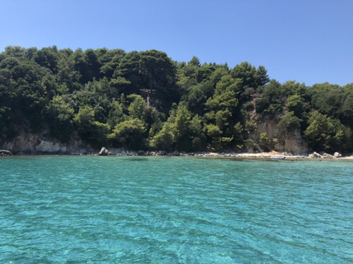 The wind calmed down after dusk so we had a peaceful evening on board. We set off this morning for the mainland to explore the coves and islands north of the Gulf of Patras. We are now anchored in a little bay with four other boats on the mainland with only the lapping of the water and cicadas for background noise.